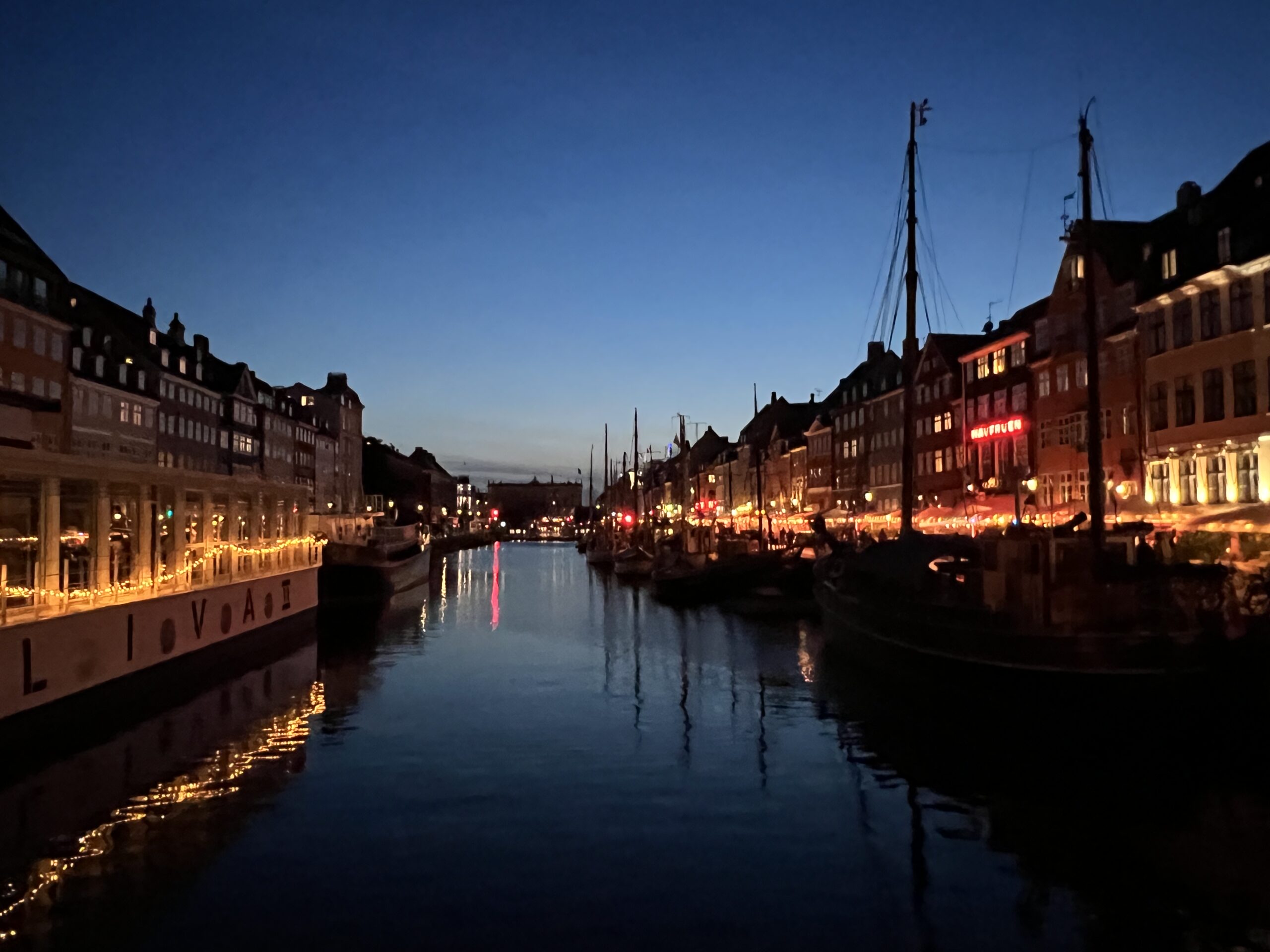 Le canal du port Nyhavn est encore plus magnifique à la tombée de la nuit.